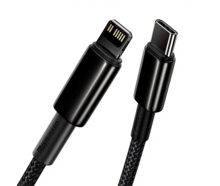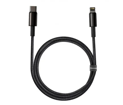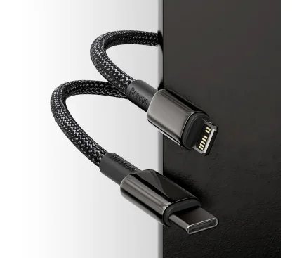 Cablu Date si Incarcare USB-C – Lightning Baseus Tungsten Gold 20W 1m Negru