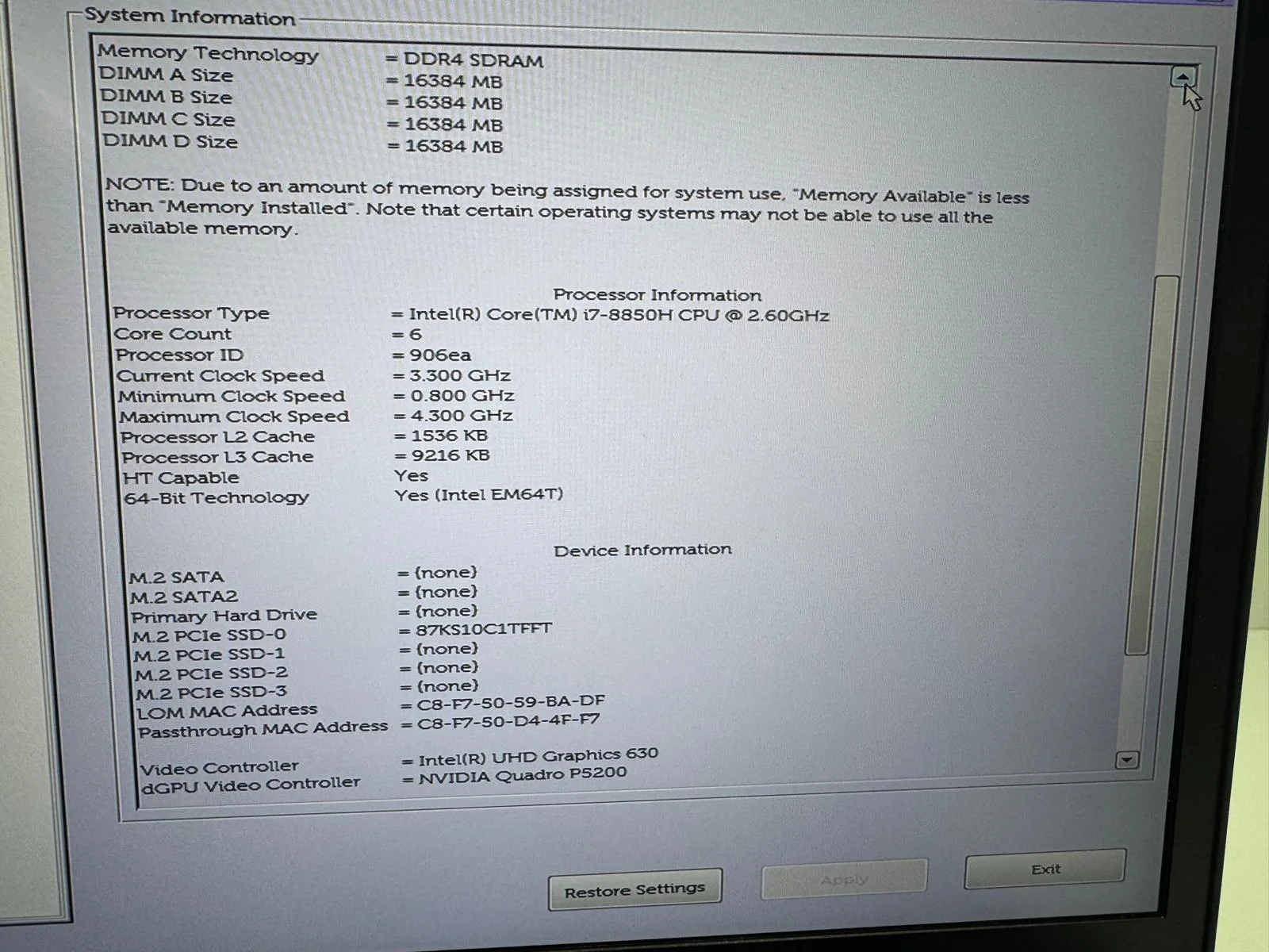 Laptop/Workstation SH Dell Precision 7730 i7-8850H 64 GB RAM SSD 512GB QUADRO P5200 16 gb