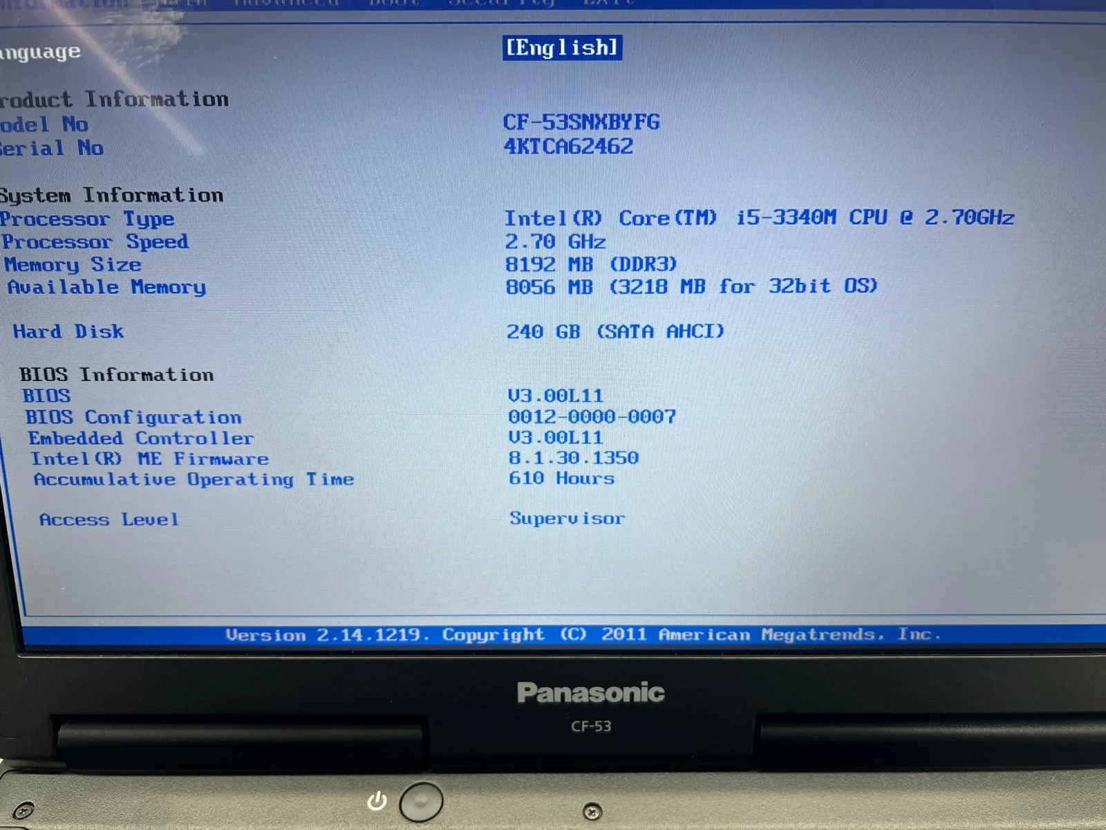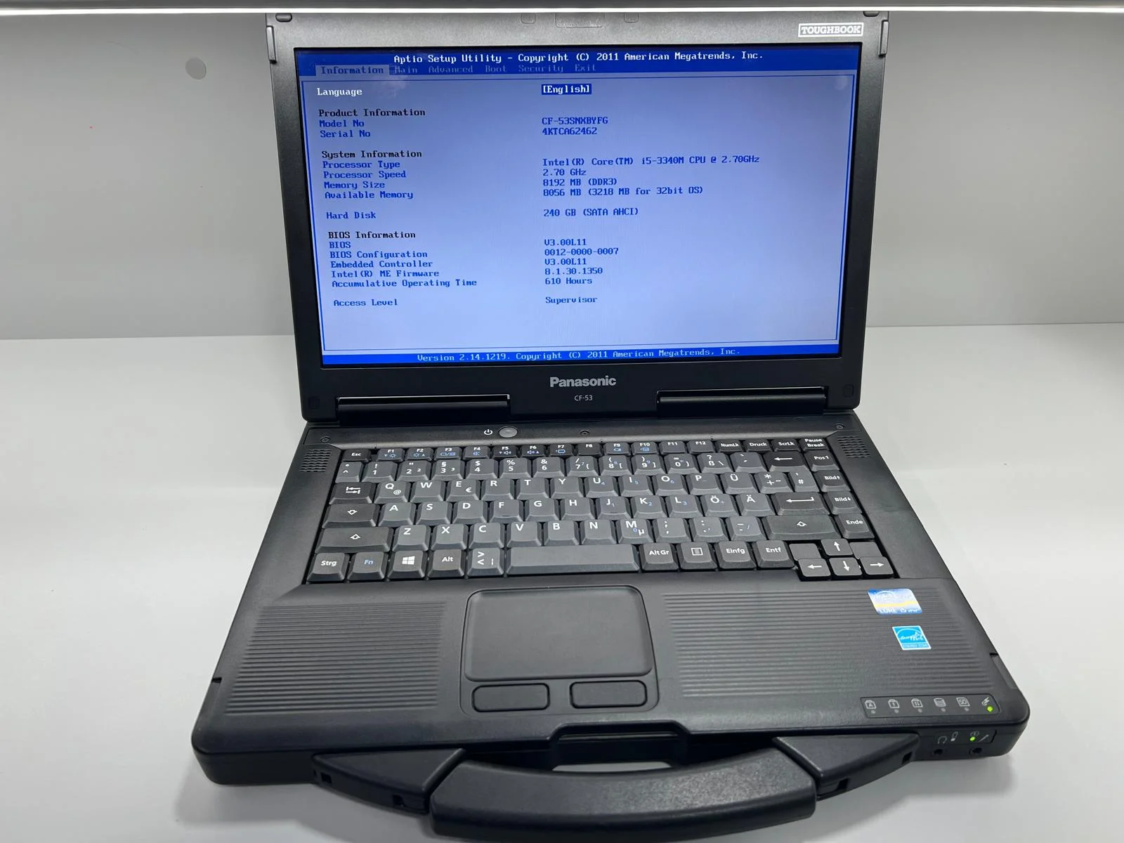 Panasonic Cf-53 ToughBook i5-3340M 8gb RAM ssd 240 gb 610 ore functionare